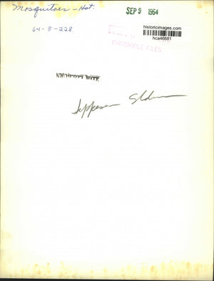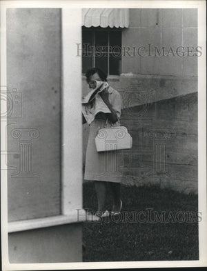 1964 Press Photo Woman stands outside Jeppesen Stadium, Houston; mosquitoes