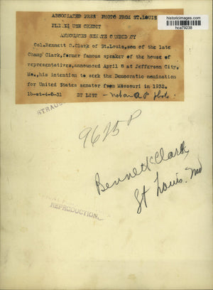 Announces Senate candidacy...Colonel Bennett C. Clark of St. Louis, son of the late Champ Clark, former famous speaker of the House of Representatives, announced April 8 at Jefferson City, Missouri, his intention to seek the Democratic nomination for United States senator from Missouri in 1932.