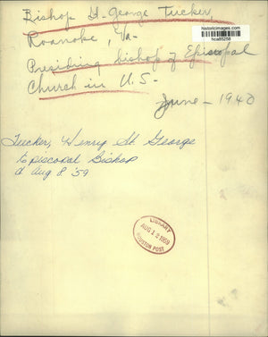 Roanoke, Virginia-Bishop Henry St. George Tucker. Presiding Bishop of Episcopal Church in U.S.