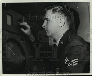 1963 Press Photo Airman 1st Class Pinsonneault tracks bomber - Bergstrom AFB