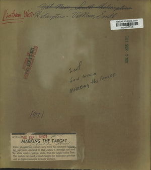 White phosphorous rockets spew from the command helicopter, top photo, operated by Major James T. Newman and send up white smoke, bottom photo, from jungle valley floor. The rockets are used to mark targets for helicopter gunships and jet fighter-bombers in South Vietnam. Vietnam War. Marking the target.