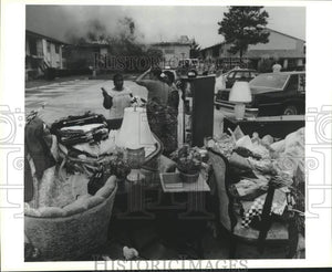 1989 Press Photo People, belongings displaced by fire at Amberton Apt-Houston