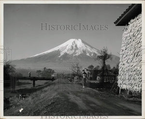 1960 Press Photo Mt. Fuji is viewed from Oshino Village, Japan. - hpa31797
