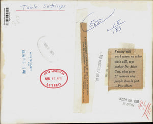 Table settings. "A Commander's Chowder" by the Alan Shepards - from his grandmother's Meissen china collection.