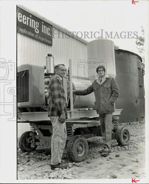 1972 Press Photo James Giese and son with Key Engineering's vacuum unit.