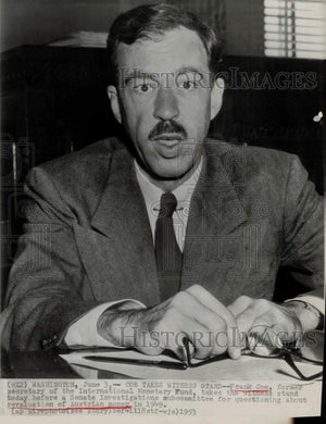 1953 Press Photo Frank Coe discusses Senate Investigations hearing in D.C.
