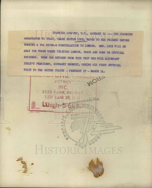 Press Photo US Amb to Italy Clare Booth Luce - KSB02657