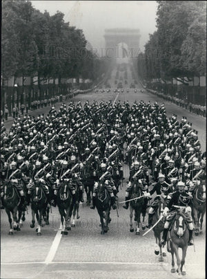1984 Press Photo Bastille Day Military Parade Down Champs Elysee Avenue in Paris