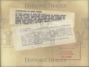 1969 Press Photo Mr. Vegern with his Matchstick Wonder
