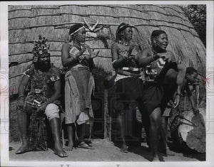 1963 Press Photo Watching three of his six remaining wives dance, the Zulu chief