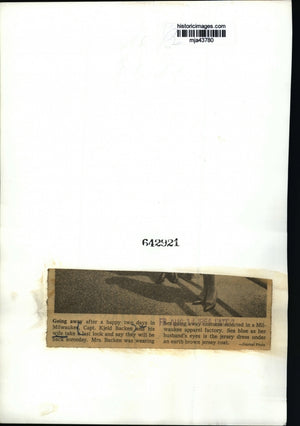 Going away after a happy two days in Milwaukee, Captain Kjeld Backen and his wife take a last look and say they will be back somdeday. Mrs. Backen was wearing her going away costume selected in a Milwaukee apparel factory. Sea blue as her husband's eyes is the jersey dress under and earth brown jersey coat.