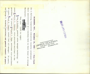 Oil & refining corporation executives recently celebrated their anniversary at a luncheon held in their honor at Aliotas Restaurant. They are (Left to Right) John W, Gudden, general sales manager sales manager marketing: 30 years Harold G. Johnson, vice president assistant to the president: 40 years Ronald J. Dopp, assistant vice president: 20 years; Jack H. Conger, retail fuel oil manager: 30 years; and George T. Wormley, secretary and general council: 20 years.