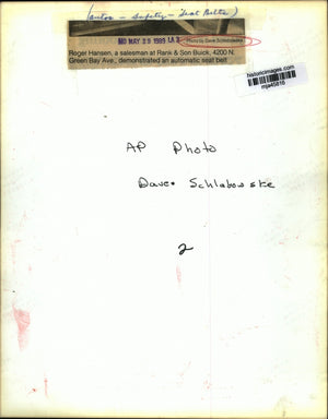 Roger Hansen, a salesman at Rank & Son Buick, 4200 N. Green bay Ave., demonstrated an automatic seat belt. (Autos-Safety-Seat Belts).