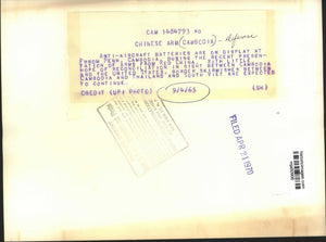 Anti-aircraft batteries are on display at Phnom Penh, Cambodia, during the recent presentation of arms from Red China. With little hope of reconciliation in sight between Cambodia and the United States, border skirmishes between Cambodia and Thailand and South Viet are expected to continue. Cambodia - Defense