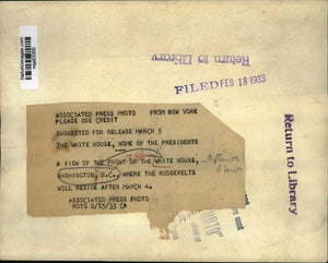 The view of the front of the White House, Washington D.C., where the Roosevelts will reside after March 4.