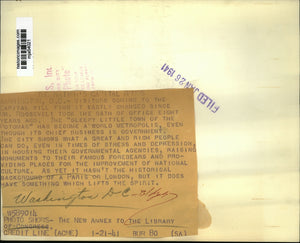 Washington, D.C. - Visitors coming to the capital will find it vastly changed since Mr. Roosevelt took the oath of office eight years ago. The "Sleepy little town of the Potomac" has become a world metropolis, even though its chief business is government. The city shows what a great and rich people can do, even in times of stress and depression, in housing their governmental agencies, raising riding places for the improvement of national culture. As yet it hasn't the historical background of Paris or London, but it does have something which lifts the spirit.
