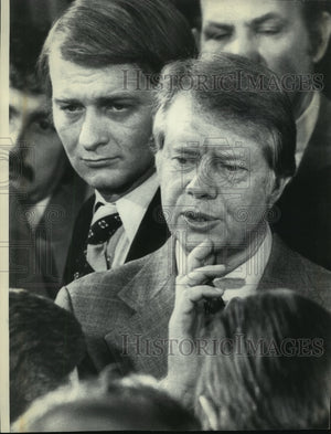 1977 Press Photo President Carter at a Mini News Conference after TV Session