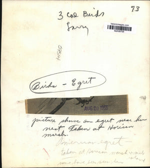 Picture phone an egret near her nest. Taken at Horicon marsh. American egret. Taken at Horicon marsh (illegible). Birds - Egret