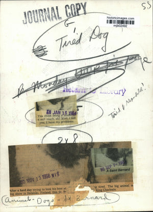 After a hard day trying to look his best at dog show in Helsinki, Finland, this Saint Bernard looks dog tired. The big animal is named King Charlesin. You think being a leader is a soft touch, eh? Well, I tell you, I have my problems. Animals - Dogs - Saint Bernard) A Saint Bernard. Tired Dog. Tired.