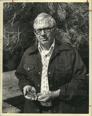 1980 Press Photo Lawrence Driessen with hay pellets that he produced - mjb05394