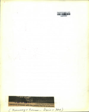 Lawrence Dreissen with hay pellets that he produces. Farming, farms, grain, hay