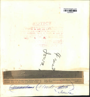 This is a view of the flooded lower business district of Dubuque, Iowa, as seen from a helicopter Friday. At lower left a boat passed the Illinois Central railroad freight dock.