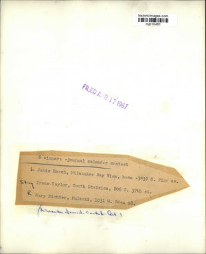 6 winners - journal calendar contest. (Left) Janis Rasch, Milwaukee Bay View, home 3937 South Pine Avenue. (Sitting) Irene Taylor, South Division, 806 South 37th Street. (Right) Mary Richter, Pulaski, 1031 West Eden Place. Milwaukee Journal - contests - art.