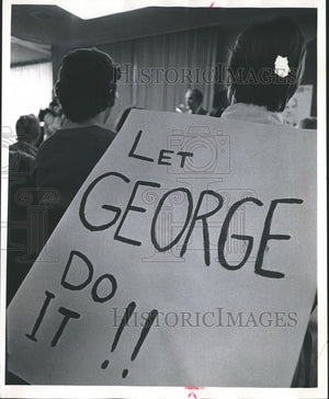 1972 Press Photo Gregory Schultz holds sign for George McGovern during speech