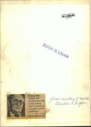 "Every public opinion poll..has demonstrated a very striking loss of confidence of people in their institutions." John Gardner. Former secretary of Health, Education and Welfare.