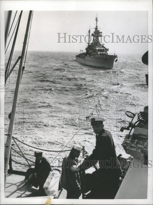 1952 Press Photo French cruiser is taken in tow by the U.S. Navy, Mediteranean