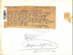 Eastern Mediterranean: Simulating a loss of power, the French Cruiser Montcalm is taken in tow by the U.S.S. Des Moines, flagship of the U.S. sixth fleet. The "Disaster" operation took place during the allies' exercise "Long step" in the Mediterranean. Naval forces from six NATO nations participated in the fall maneuvers.