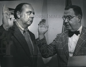 1975 Press Photo Lee McMurrin School Superintendent, With Hand Raised in Promise