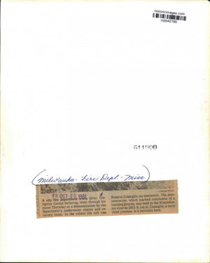 A city fire department scuba diver, firefighter Gerald Ballering, went through his paces Thursday at a demonstration by the department's underwater rescue and recovery team. In the rubber raft was Rosario Consiglio, an instructor. The demonstration, which marked conclusion of a training course, was held in the Kinnickinnic River at 2011 South 1st Street. Consiglio, a navy chief yeoman, is a recruiter here. Milwaukee Fire Department