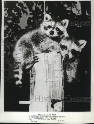 1966 Press Photo A pair of raccoons on a birdfeeder - mjb42322