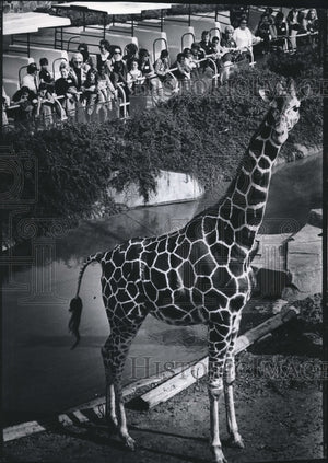 1973 Press Photo Onlookers at the zoo looking at a giraffe, Milwaukee.