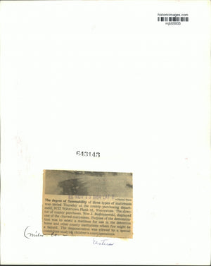 The degree of flammability of three types of mattresses was tested Thursday at the county purchasing department, 9722 Watertown Plank Road, Wauwatosa. The director of county purchases, Wes J Budziszewski, displayed on the the charred mattresses. Purpose of the demonstration was to select a mattress for use in the detention home and other county institutions where fire might be a hazard. The demonstration was viewed by a special committee studying children's court operations. Milwaukee county