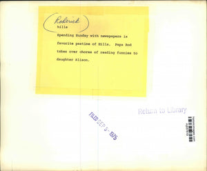 (Roderick Hills) Spending Sunday with newspapers is favorite pastime of Hills. Papa Rod takes over chores of reading funnies to daughter Alison.