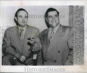 Assault cost him his sight - Labor columnist Victor Riesel, left, faces a life of darkness following sulphuric acid assault April 5, by an unidentified assailant, that has cost him the sight of both eyes. An announcement in New York today said there is no hope at all now that he will ever see again. He is shown here during interview with Bert H. Ross, International vice-president of AFL Hotel and Restaurant Employees and Bartenders International Union some months ago. Victor Riesel.