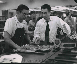 1955 Press Photo Al Kaczmarek, composing, and Tom Smith, Milwaukee Journal