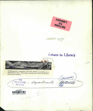 Al Kaczmarek, composing, and Tom Smith are making up a daily Picture page. This page is usually reserved for local news and feature material. The Milwaukee Journal - Departments - Composing