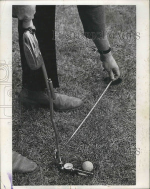 1963 Press Photo Man measuring length of golf with Fun Putter at Milwaukee sport