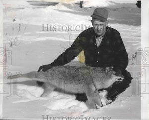 1960 Press Photo Clarence Marguardt, of Shawano, with coyote worth $20 bounty