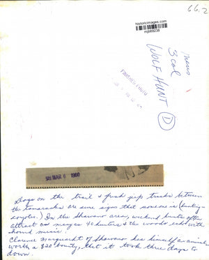 Dogs on the trail & fresh jeep tracks between the tamaracks are sure signs that someone is (hunting coyotes.) In the Shawano area, weekend hunts often attract as many as 40 hunters & the woods echo with hound music. Clarence Marguardt of Shawano has himself an animal worth a $20 bounty, that it took three days to down.