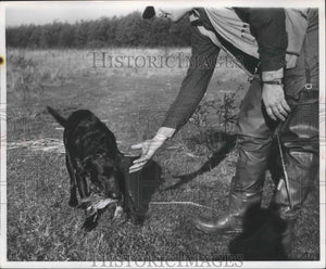 Wisconsin - Hunting ducks at the Rock River near Ashippun (Dodge county) is Martin Weber, Jr. of Merton. His dog Napoleon swims out to make the retrieve. His reward is a kind word and a pat on the head.