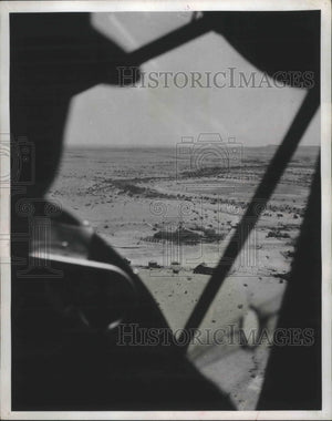 1953 Press Photo Aerial view of pilot in plane dropping newspapers at ranches.