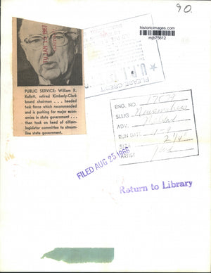 William R. Kellett , retired Neenah industrialist, released recommendations of his legislative pay raise committee August 23, calling for a $3,000 a year pay raise for state lawmakers. Madison, Wisconsin. William R. Kellett, retired Kimberly-Clark board chairman...headed task force which recommended and is pushing for major economies in state government...then took on head of citizen-legislator committee to streamline state government.