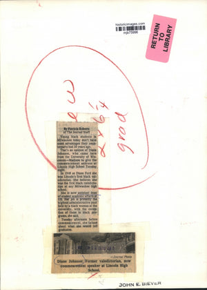 Diane Johnson: Former valedictorian now commencement speaker at Lincoln High School. Young black students in Milwaukee today don't have some advantages their counterparts had 30 years ago. That an opinion of Diane Johnson, who came here from the University of Wisconsin-Milwaukee to give the commencement address at Lincoln High School Tuesday night.