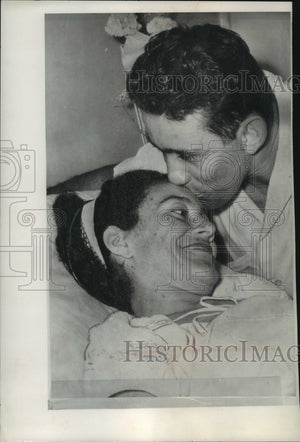 1963 Press Photo The quints' father, Efren Prieto, 39, kissed their mother, Inez