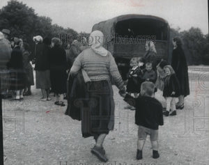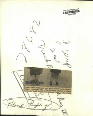 1956 Press Photo Passengers Ride In Former Army Trucks/ Buses In Poland