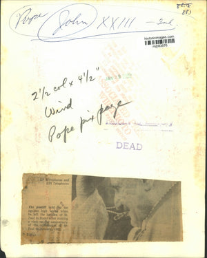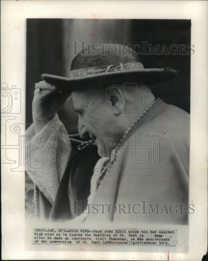 High Wind---Pope John XXIII holds his hat against high wind as he leaves the basilica of Saint Paul in Rome, after he made an impromptu visit Thursday, on the anniversary of the conversion of Saint Paul. Pope John XXIII. Wind. Pope.